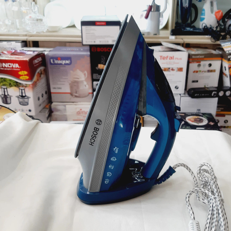 اتو بخار بوش با گارانتی 1 ساله 2400وات، کف سرامیک با دکمه تخلیه رسوب. خود خاموش شونده. بخار 120 گرم.و بخاردهی ایستاده مدل 2323