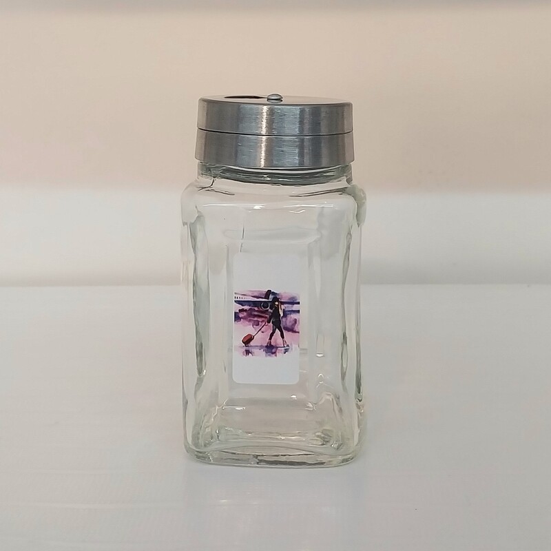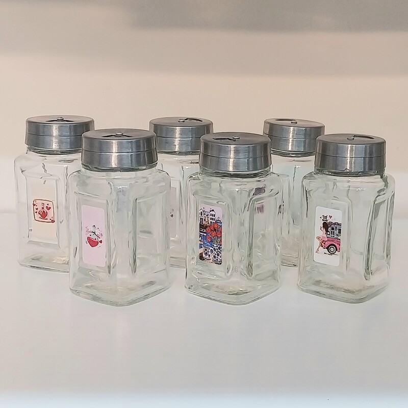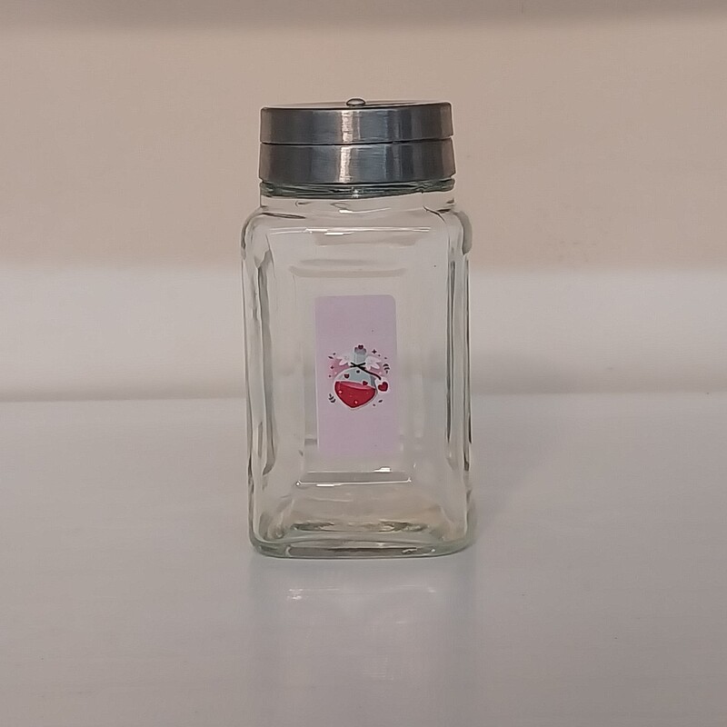 نمکپاش ادویه پاش شیشه ای درب استیل چرخشی دارای دو حالت ریز و درشت طرح های فانتزی برچسب ضد آب