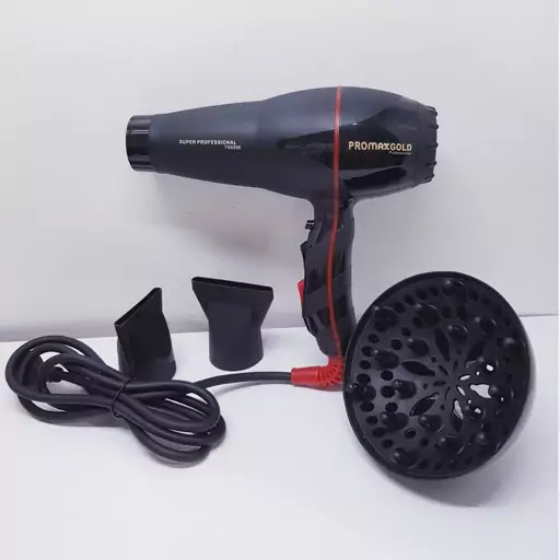 سشوار پرومکس گلد اصلی پروفشنال حک شده 7000 وات به همراه 10 عدد شانه و دو سری و دیسپانسر مدل LUXE AIR 7