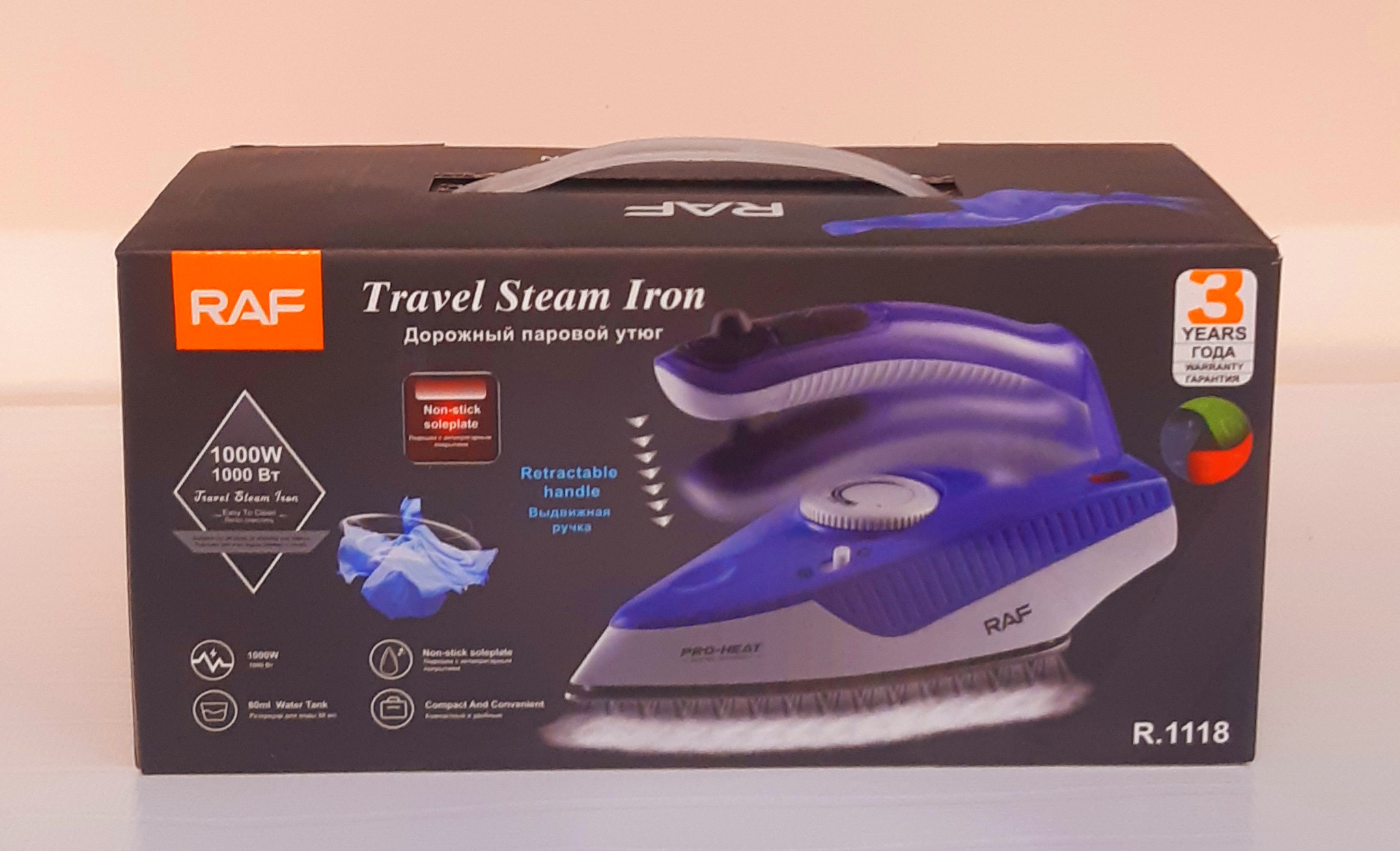 اتو مسافرتی راف با گارانتی شرکتی دسته تاشو ۱۰۰۰ وات مدل R.1118