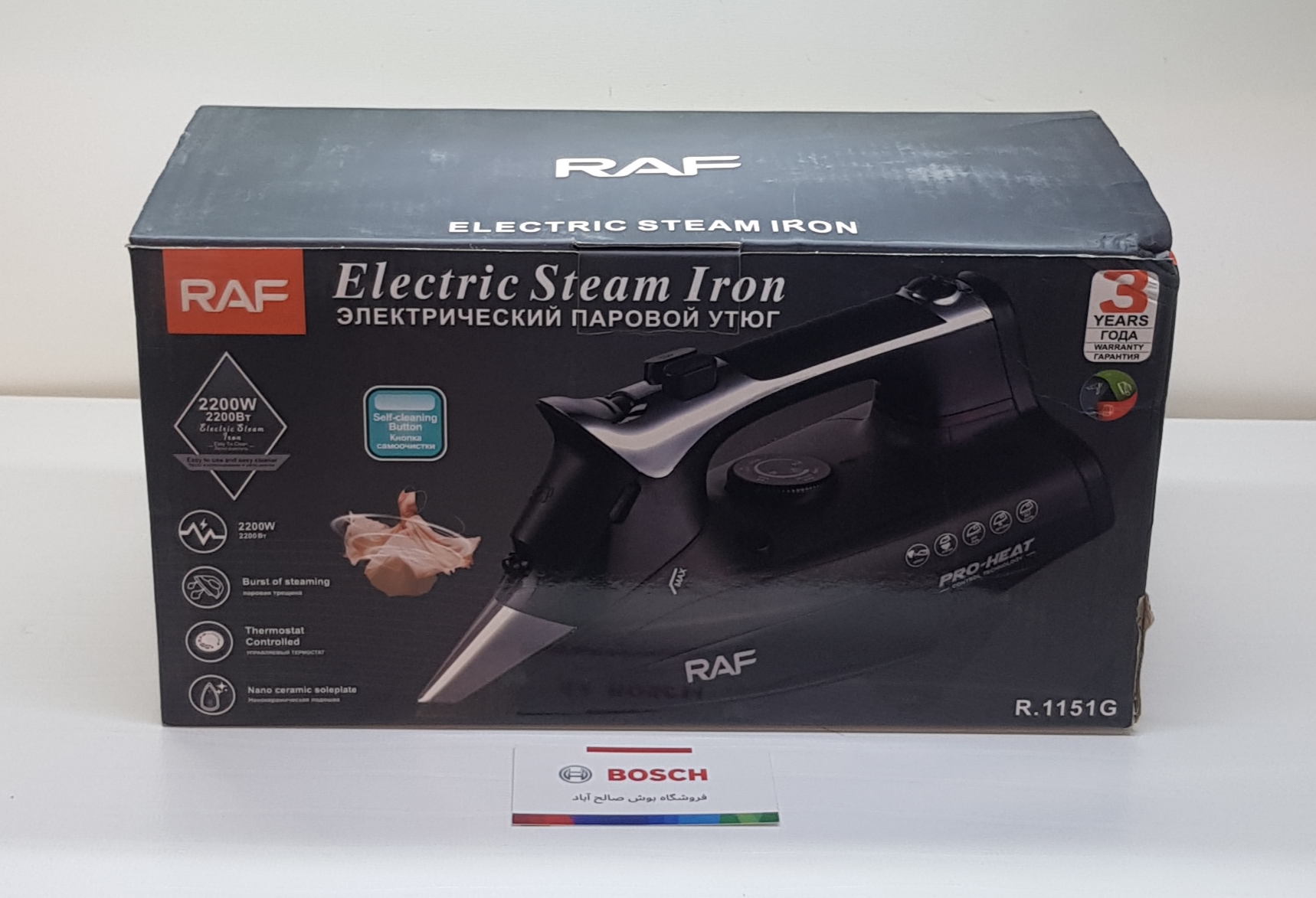 اتو بخار راف با گارانتی ۱ ساله ۲۲۰۰ وات رنگ مشکی صفحه Nano ceramic مدل R,1151G