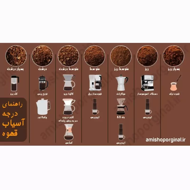- آسیاب فرنچ پرس: آسیاب درشت برای فرنچ پرس.