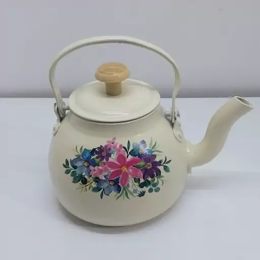 کتری روحی طرح دار فانتزی 1.5 لیتری نسوز و نگیر رنگ کوره قطر 14 و ارتفاع15