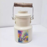 بانکه و سطل روحی شیر و روغن 400 میلی لیتر رنگ کوره دسته چوبی یکتا بوش بدنه کمی زدگی دارد