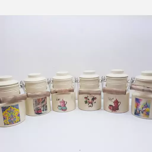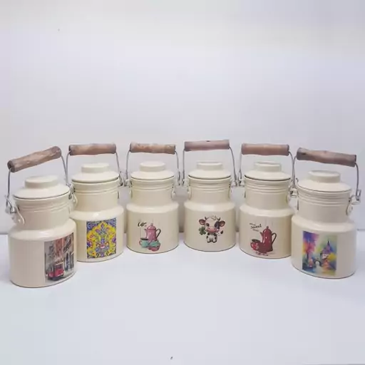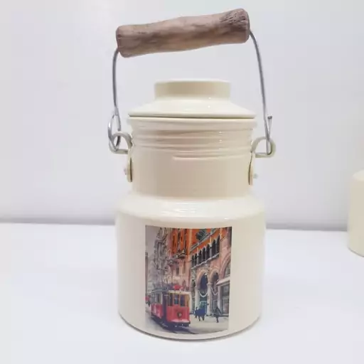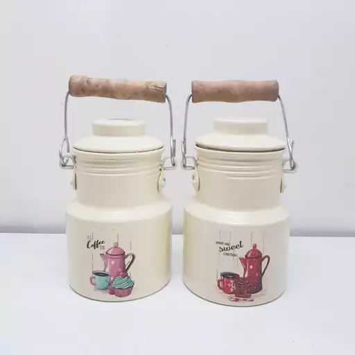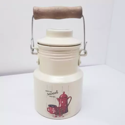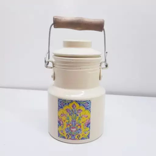 بانکه و سطل روحی شیر و روغن 400 میلی لیتر رنگ کوره دسته چوبی یکتا بوش بدنه کمی زدگی دارد