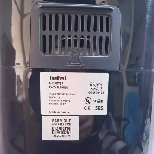 سرخ کن و هواپز بدون روغن تفال اصلی حک شده فرانسه 10 لیتری 3000 وات 2 المت بدنه خط دارد مدل تفال 9550